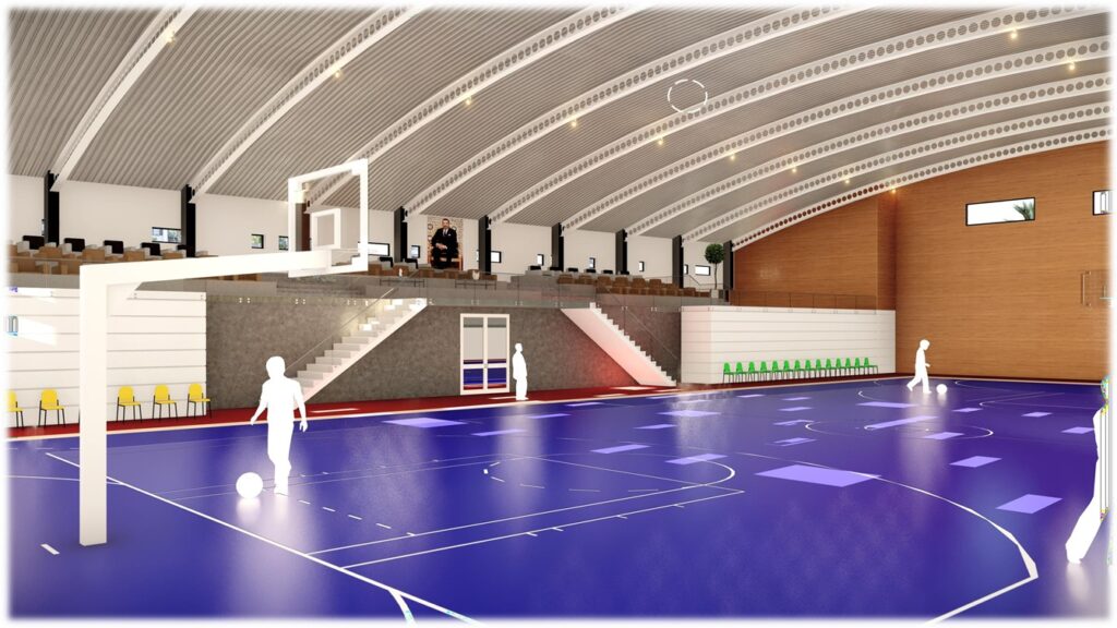وصف المشروع يتكون المشروع من طابق أرضي ومدرجات. يضم الطابق الأرضي مرافق متعددة تشمل: غرف تبديل الملابس، مرافق صحية مخصصة للجمهور، قاعة متعددة الاستعمالات، إدارة، صالون شرفي، مقهى، قاعة للعلاج، ومستودع للمعدات.